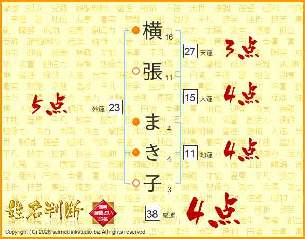 横張まき子さんの総運は38画の4点!