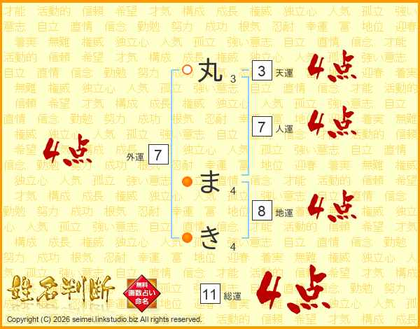 丸まきさんの総運は11画の4点!