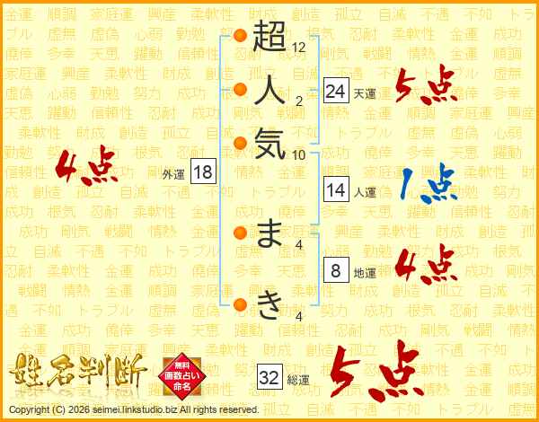 超人気まきさんの総運は32画の5点!