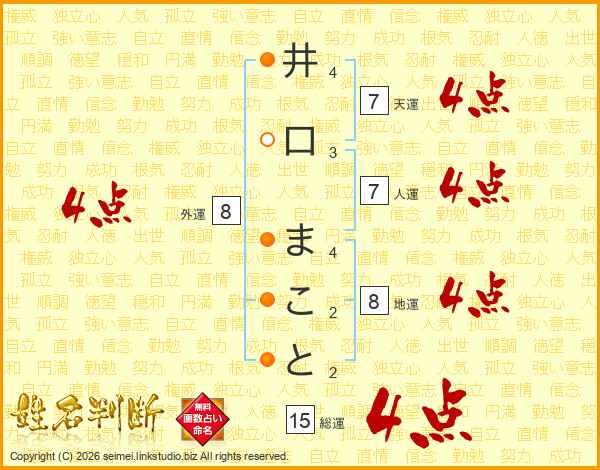 井口まことさんの人運は7画の4点!
