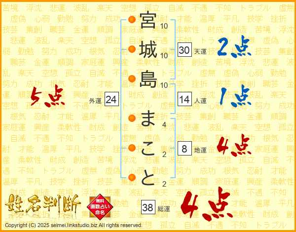 宮城島まことさんの総運は38画の4点!