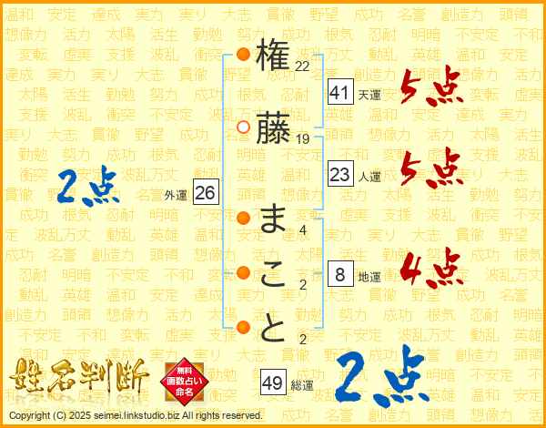 権(22画)藤(19画) ま(4画)こ(2画)と(2画)