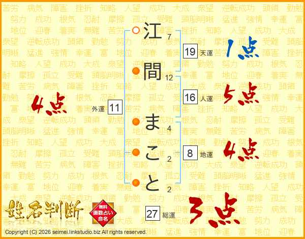 江間まことさんの総運は27画の3点!