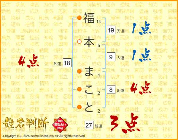 福(14画)本(5画) ま(4画)こ(2画)と(2画)