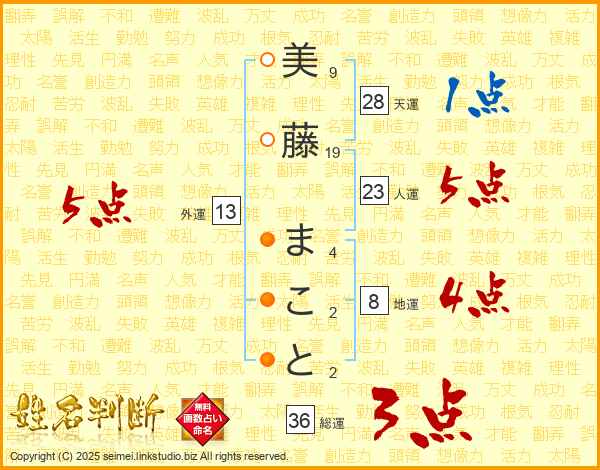 美(9画)藤(19画) ま(4画)こ(2画)と(2画)