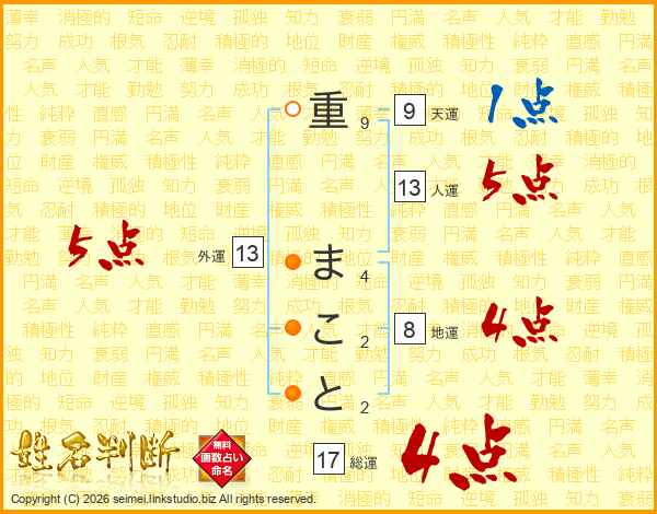 重まことさんの総運は17画の4点!