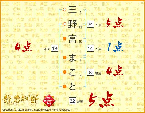 三野宮まことさんの総運は32画の5点!
