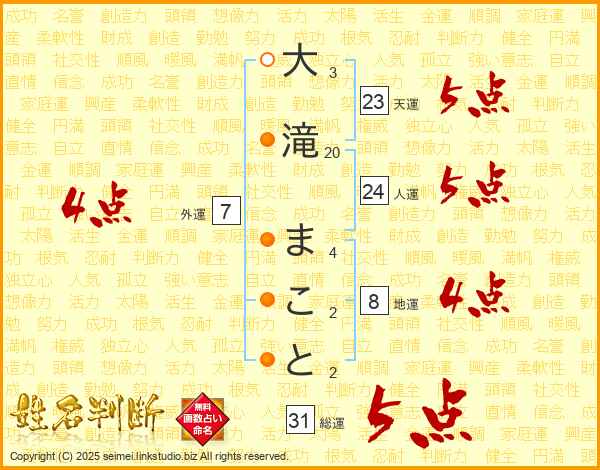 大(3画)滝(20画) ま(4画)こ(2画)と(2画)