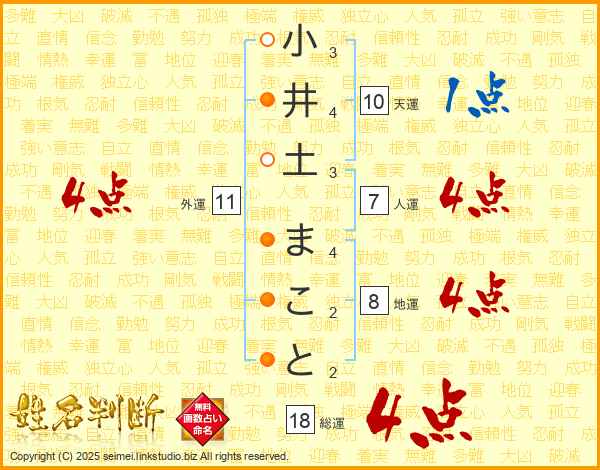 小井土まことさんの人運は7画の4点!