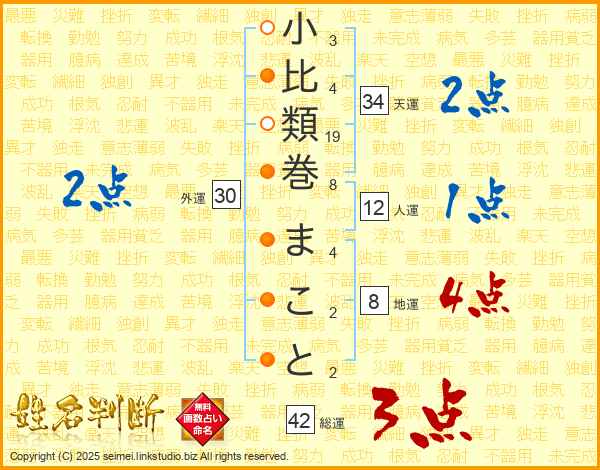 小(3画)比(4画)類(19画)巻(8画) ま(4画)こ(2画)と(2画)