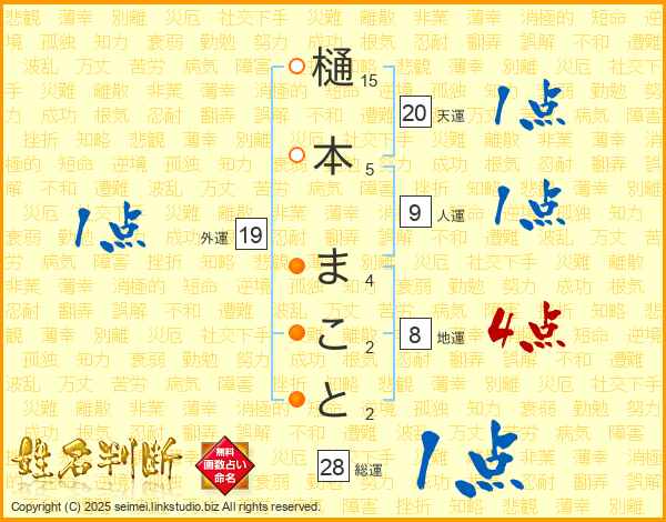 樋本まことさんの総運は28画の1点!