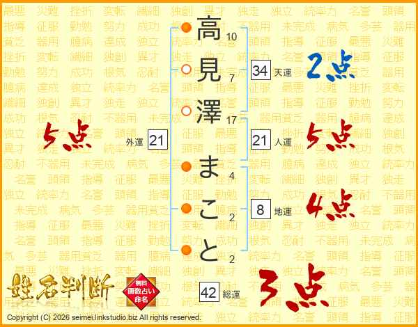高(10画)見(7画)澤(17画) ま(4画)こ(2画)と(2画)