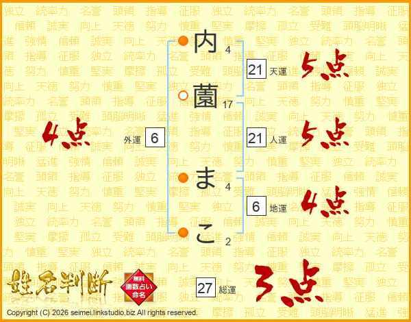 内薗まこさんの天運は21画の5点!