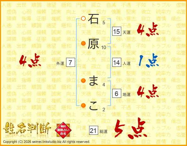 石原まこさんの総運は21画の5点!
