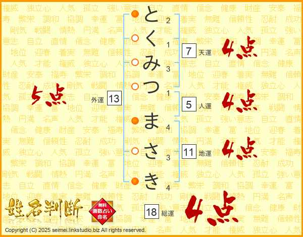と(2画)く(1画)み(3画)つ(1画) ま(4画)さ(3画)き(4画)