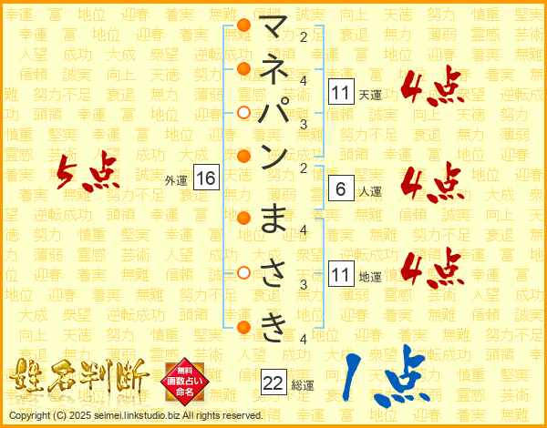マ(2画)ネ(4画)パ(3画)ン(2画) ま(4画)さ(3画)き(4画)