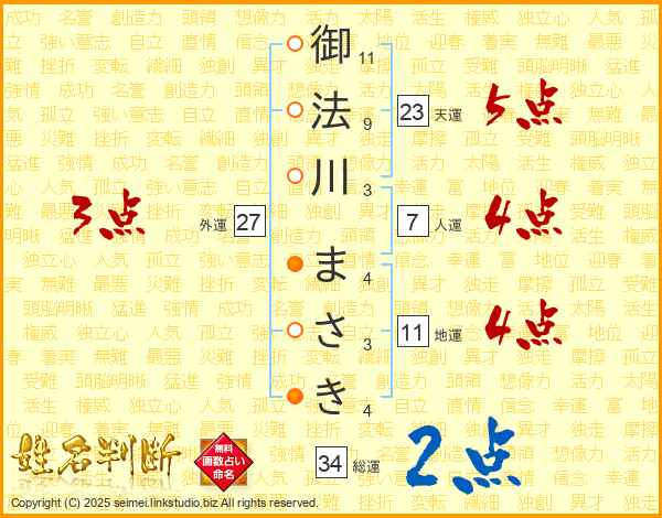 御法川まさきさんの総運は34画の2点!