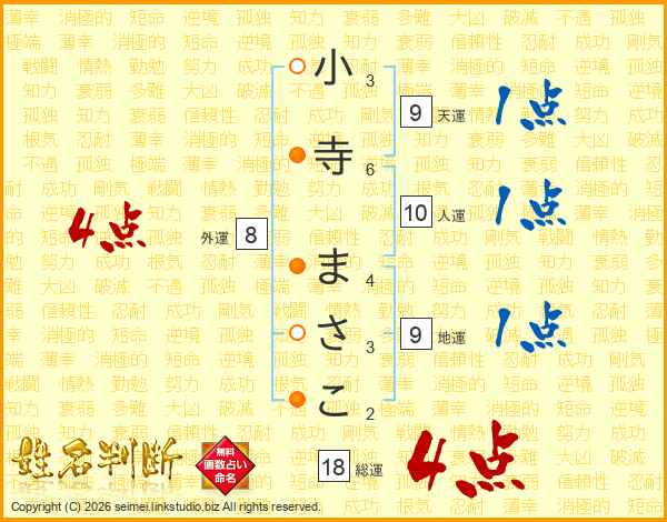 小(3画)寺(6画) ま(4画)さ(3画)こ(2画)
