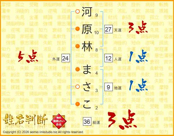 河(9画)原(10画)林(8画) ま(4画)さ(3画)こ(2画)