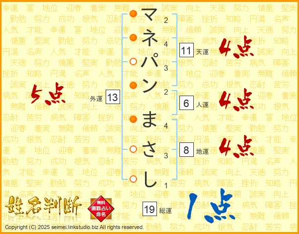 マ(2画)ネ(4画)パ(3画)ン(2画) ま(4画)さ(3画)し(1画)