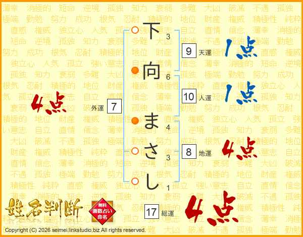 下向まさしさんの総運は17画の4点!