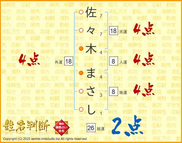 佐々木まさしさんの総運は26画の2点!