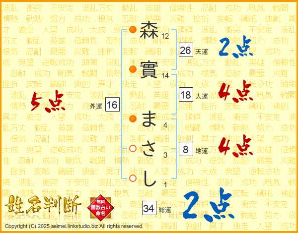 森(12画)實(14画) ま(4画)さ(3画)し(1画)