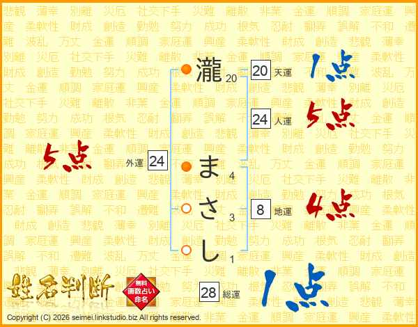 瀧まさしさんの総運は28画の1点!