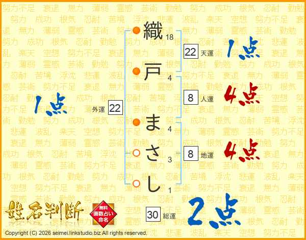 織戸まさしさんの総運は30画の2点!