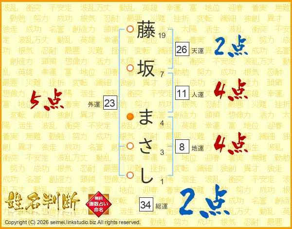 藤(19画)坂(7画) ま(4画)さ(3画)し(1画)