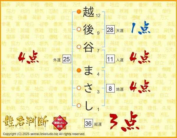 越後谷まさしさんの人運は11画の4点!
