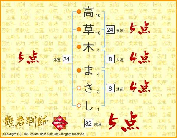 高(10画)草(10画)木(4画) ま(4画)さ(3画)し(1画)