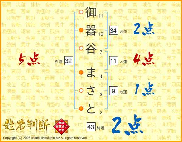 御器谷まさとさんの総運は43画の2点!