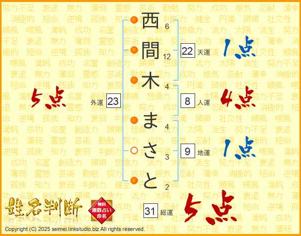 西(6画)間(12画)木(4画) ま(4画)さ(3画)と(2画)