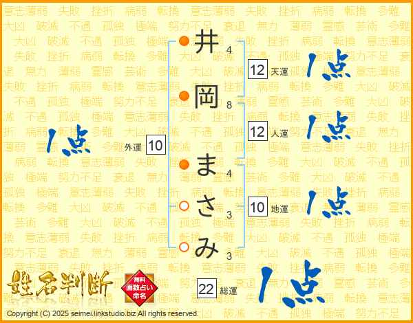 井(4画)岡(8画) ま(4画)さ(3画)み(3画)