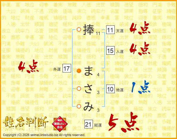 捧まさみさんの総運は21画の5点!