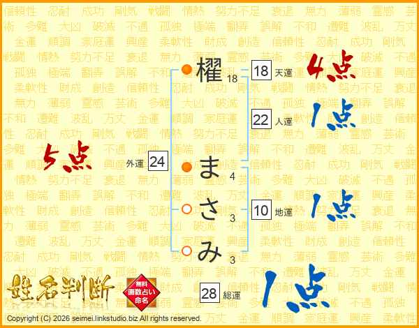 櫂まさみさんの総運は28画の1点!