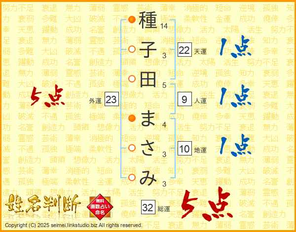 種子田まさみさんの総運は32画の5点!