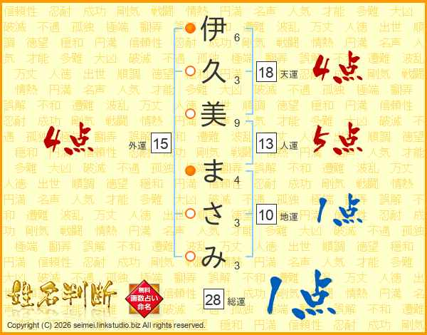 伊久美まさみさんの外運は15画の4点!