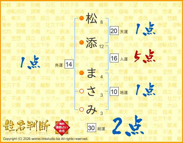 松添まさみさんの外運は14画の1点!