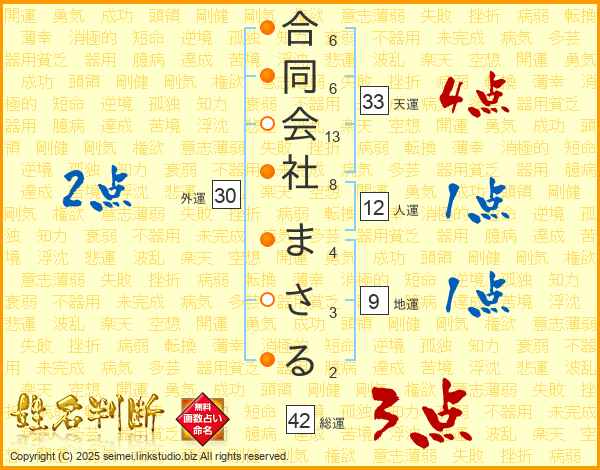 合同会社まさるさんの天運は33画の4点!