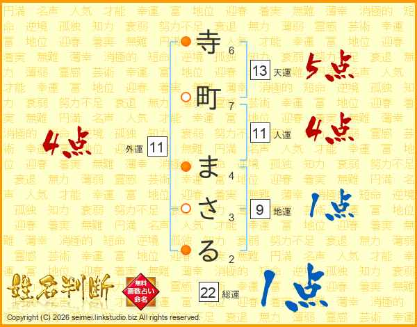 寺(6画)町(7画) ま(4画)さ(3画)る(2画)