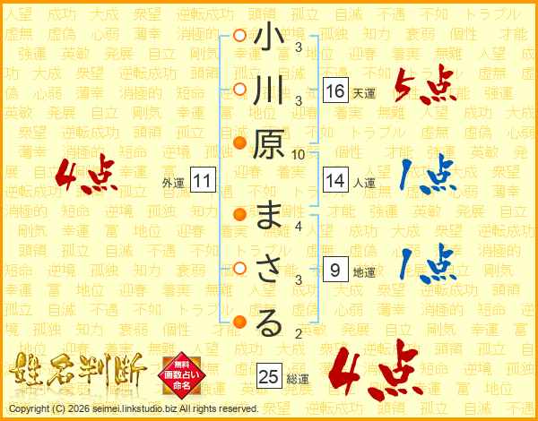 小川原まさるさんの総運は25画の4点!