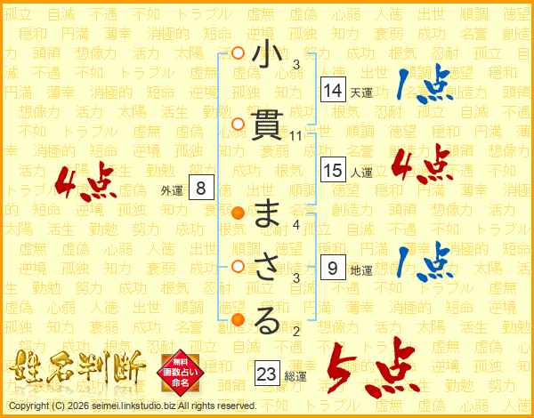 小貫まさるさんの総運は23画の5点!