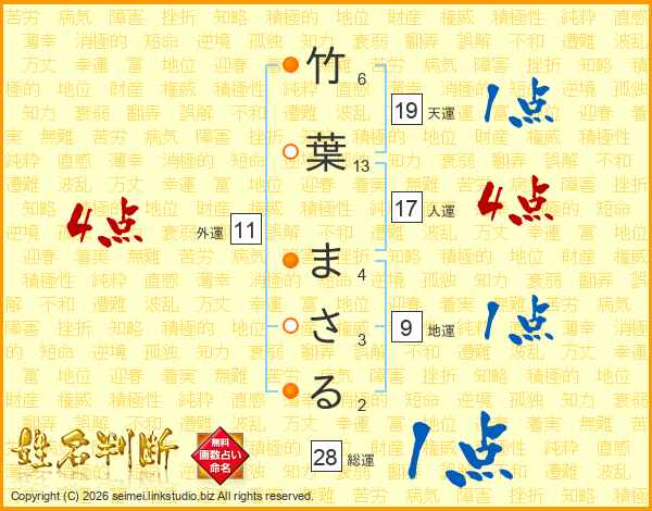 竹(6画)葉(13画) ま(4画)さ(3画)る(2画)