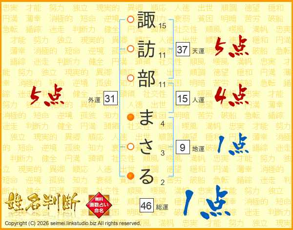諏(15画)訪(11画)部(11画) ま(4画)さ(3画)る(2画)