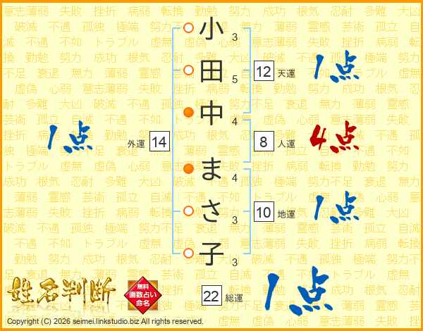 小田中まさ子さんの総運は22画の1点!