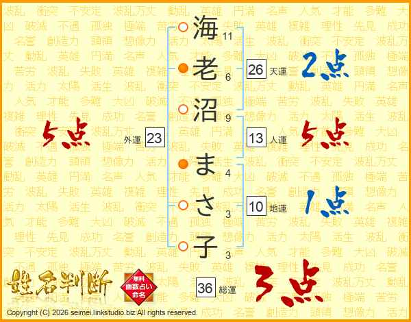 海老沼まさ子さんの総運は36画の3点!