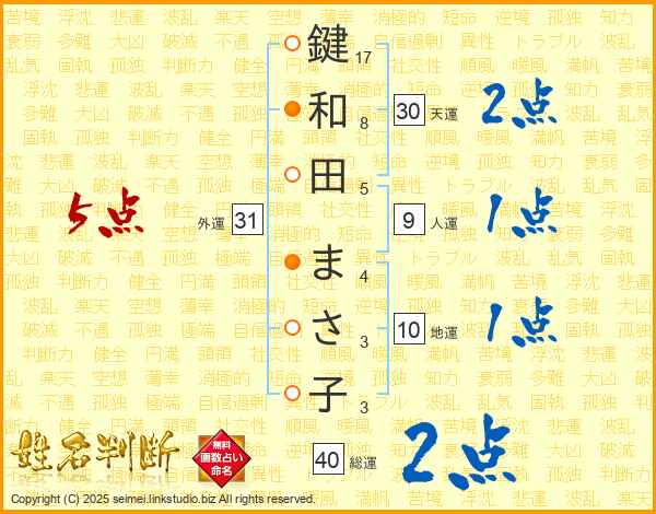 鍵和田まさ子さんの天運は30画の2点!