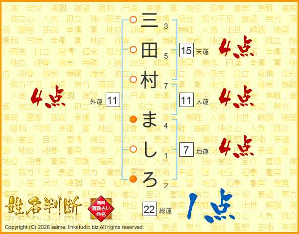 三(3画)田(5画)村(7画) ま(4画)し(1画)ろ(2画)